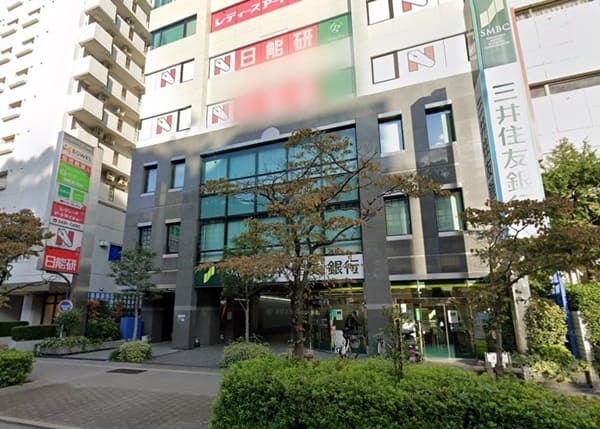 信号を渡って4つ目のビル(1階は三井住友銀行)に着きました。