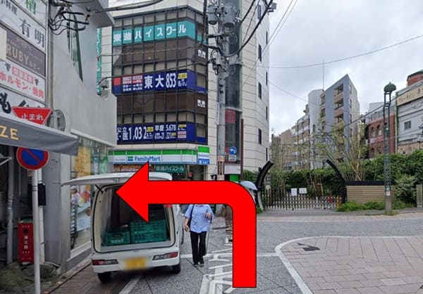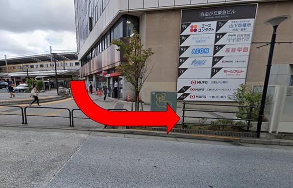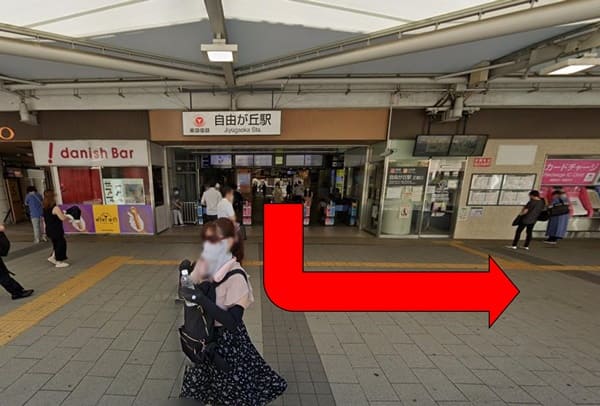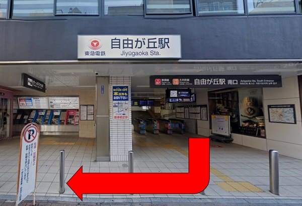 自由が丘駅の正面口からGaba英会話 自由が丘に向かう場合、まずは正面口を出て左方向に進みます。