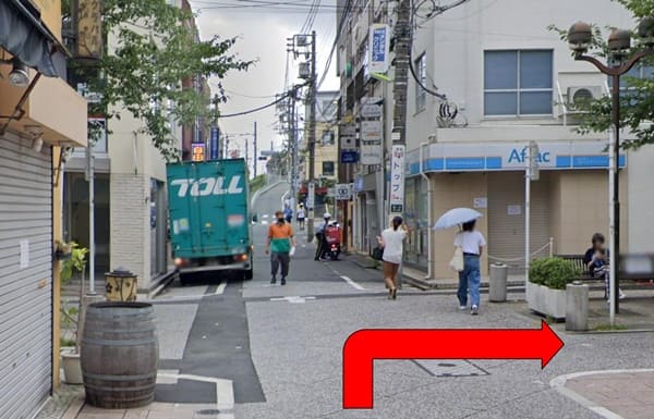 左折して少し歩くとアフラックのある交差点に行き着きます。