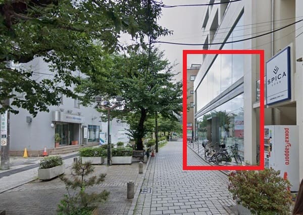 その後、少し歩くと右手にドコモショップが入ったビルが見えてきます。