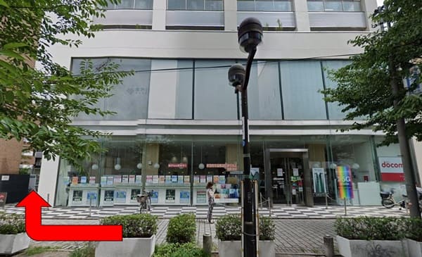 右折して少し歩くと右手にドコモショップが入ったビルが現れます。