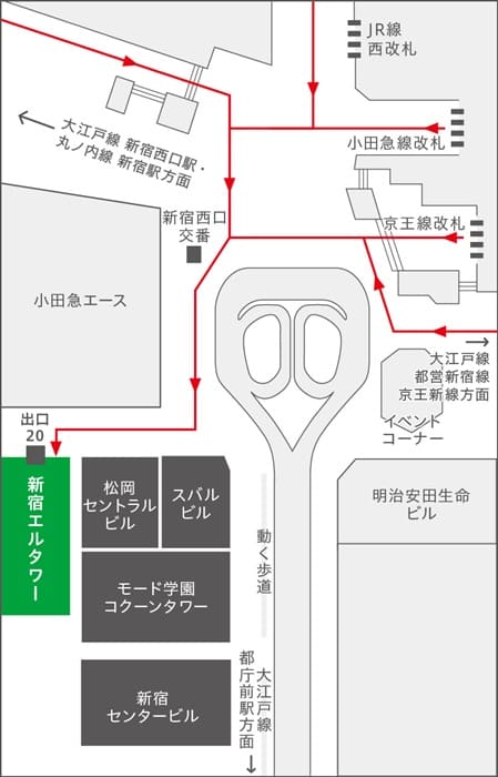 その先に「出口 Exit 20」があり、こちらが新宿エルタワーの入口です。